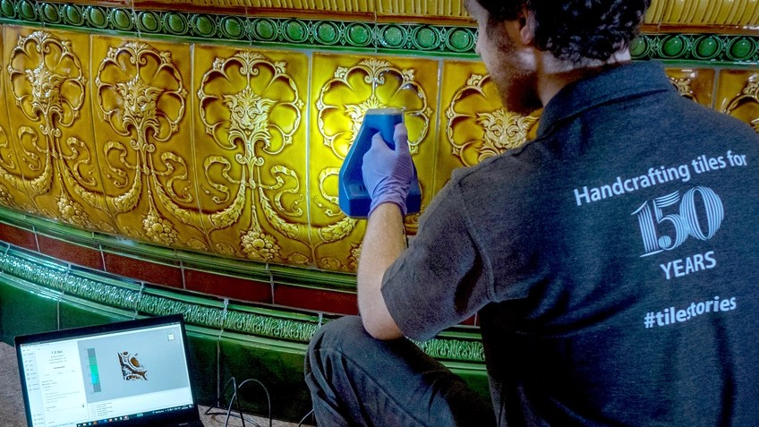 雖然最終的方法仍然涉及CNC加工和手工修整瓷磚,但現(xiàn)在這意味著它們可以被原位掃描,從而消除了破損的風(fēng)險。它還允許以無與倫比的準(zhǔn)確性捕捉原始設(shè)計,并以數(shù)字形式永垂不朽。