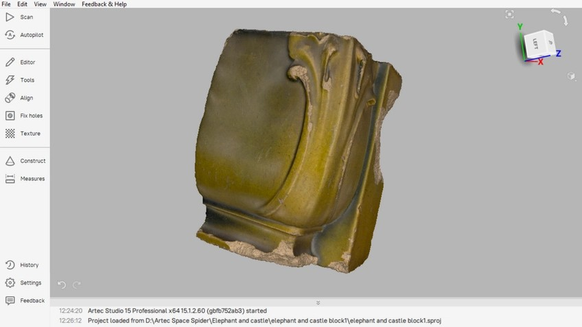 在Artec Studio上進(jìn)行3D掃描和編輯后的原始瓷磚碎片之一。