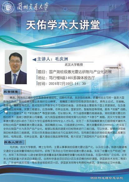 2024年7月10日下午篤行樓1405,應(yīng)學(xué)院邀請(qǐng),武漢大學(xué)教授、博士生導(dǎo)師毛慶洲為我院師生做了“國(guó)產(chǎn)測(cè)繪級(jí)激光雷達(dá)研制與產(chǎn)業(yè)化進(jìn)展”的學(xué)術(shù)報(bào)告。學(xué)院部分老師、研究生80多人參加了學(xué)習(xí)和交流,報(bào)告由學(xué)院何毅教授主持。